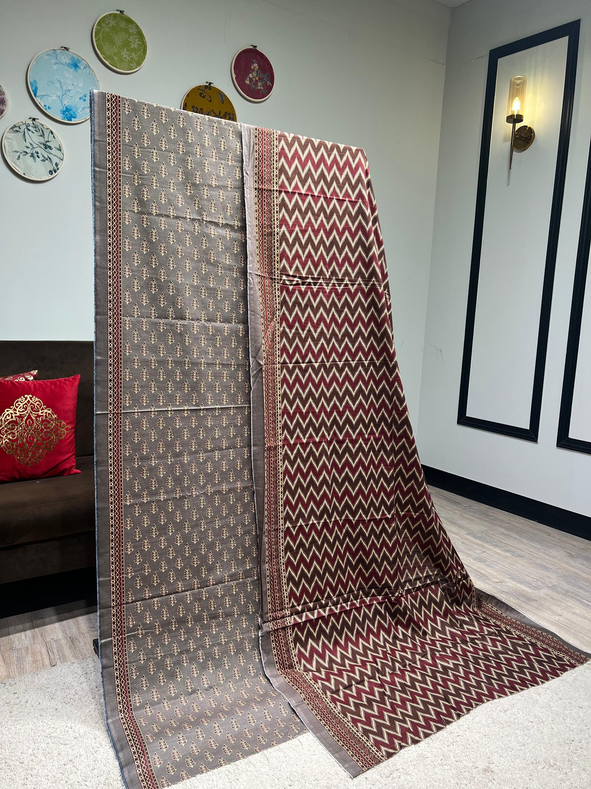 Dupatta: Contrasting digital printed khadar dupatta featuring brown zigzag print for a striking finish.